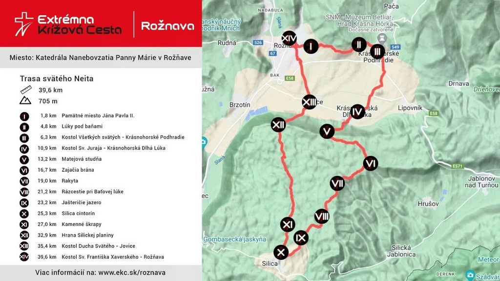 Rímskokatolícky farský úrad v Rožnave organizuje tento rok Extrémnu krížovú cestu v piatok 20. marca 2026. Začne večernou svätou omšou o 18,00 hodine v Katedrále nanebovzatia Panny Márie v Rožňave a následne budú účastníci putovať trasou dlhou približne 40 kilometrov so 14  zastaveniami. Cesta povedie aj cez obec Krásnohorské Podhradie, čo poskytne obyvateľom možnosť stretnúť sa s pútnikmi a podporiť ich vo viere a odhodlaní.